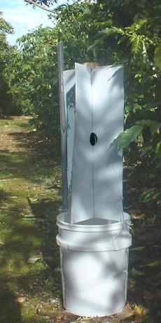 Recommended trap: Vaned Bucket Trap (P050-Trap) Twenty liter bucket with white plastic vanes for mass trapping June bugs.